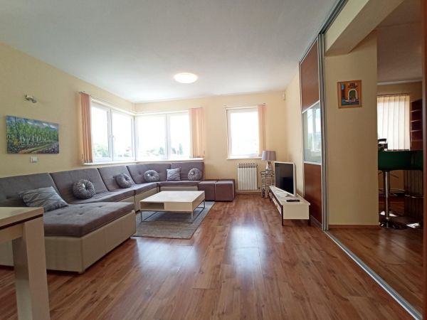 Big open living and dining area with spacious kitchen. Exit to big beautiful terrace(45 Square meters) with view. Toilette. Additional room-study or pantry