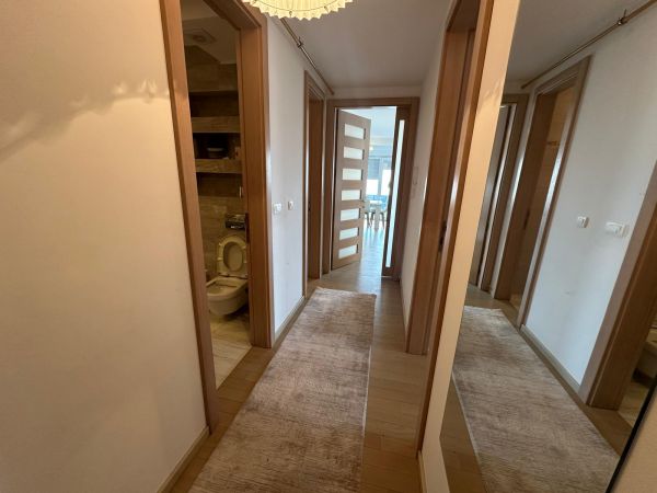 Modern furnished apartment of xx m2 located in recently build building in Skenderija area. The apartment is rented with parking space in garage on ground floor in the building. The apartment consists of big open space living room, and dining area with exit to terrace, semi detached kitchen , hallway, boyler room with storrage or pantry, 2 bathrooms, 2 bedrooms. Terrace is big and provides beautiful view on entire Sarajevo. Gas heating with back up. Cable TV. Internet.Alarm. Air conditioning. Video surveillance.