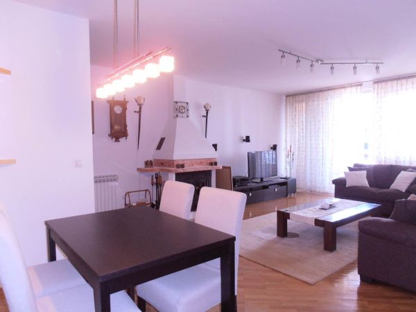 The apartment comprises:entrance hall with wardrobes, big open area living room(fireplace) with dining room (this area is very bright and sunny because of big windows). From here is exit to terrace that offers view at city center.Kitchen is modern and fully equipped. . There are three bedrooms(momentarily one is used as study room but that can be changed by your needs), big bathroom with hydro-massage bathtub and another with shower and space for washing and drying machines. Apartment is very quiet and will provide max privacy.