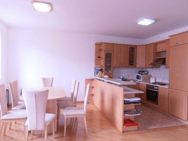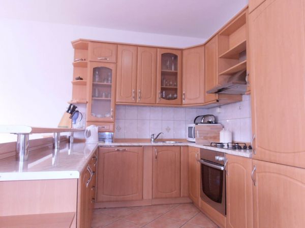 Apartment is on second floor has 85 square meters and consists of kitchen and dining area connected to open living room that have exit to terrace((20 square meters) with beautiful view. 2 bedrooms,bathroom,laundry room.