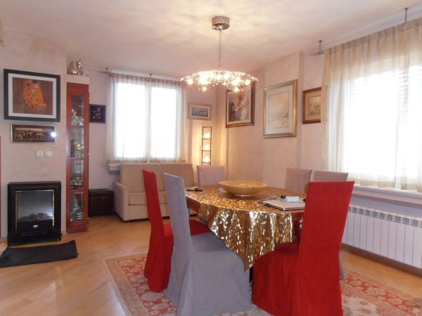 Apartment has 100 square meters and comprises entrance hall with wardrobes,big open living room and dining room area with kitchen. From living room is balcony with beautiful view at city park and center of Sarajevo. There is another in glassed balcony from kitchen that can be used as storage. Also there is main bedroom and second bedroom and bathroom.
