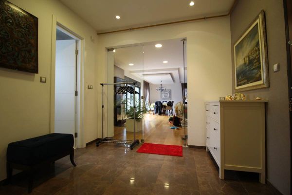 This apartment area of 210 square meters have spacious entrance hall, open floor living room area with dining room and kitchen from where is exit to terrace and garden,four spacious bedrooms, three bathrooms ,toilet, long hall with closets, spacious laundry room . Place offers 2 parking places for your cars inside of graded gates.