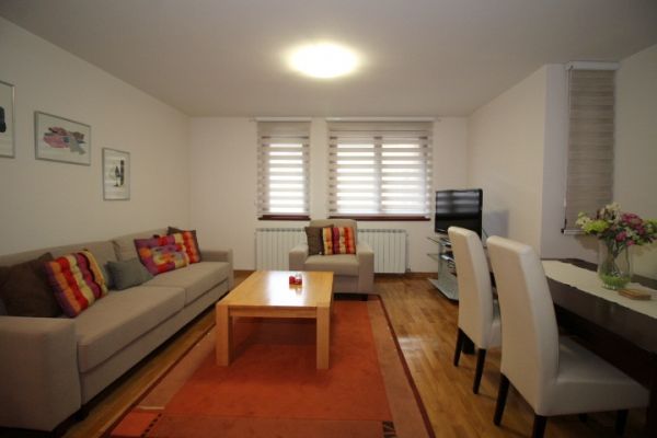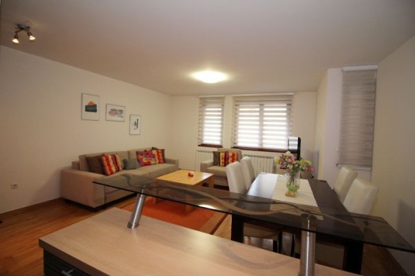 Apartment comprises entrance hall with wardrobes,living room with dining area and kitchen.one bedroom, second bedroom with exit to private terrace(30 square meters),bathroom,toilet,pantry.