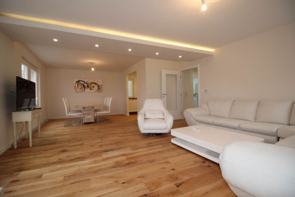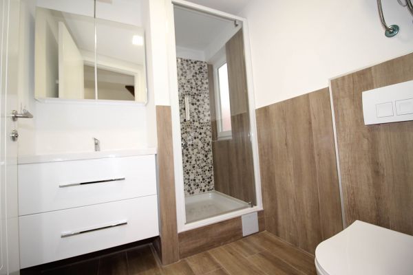 1.st level- big open living room (fireplace and exit to terrace)with dining area and semi closed kitchen, 1 bedroom with bathroom, another bedroom,bathroom