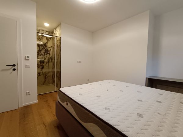 New modern furnished 3 bedroom apartment in a new building, size 105 square metres , located on the second floor of a new residential building with an elevator. The apartment consists of a hallway, a spacious, bright, open plan living room with a dining room and a kitchen, a balcony of approx. 10 m2, three bedrooms, one of which is a master bedroom with a shower, a bathroom and a small toilet.