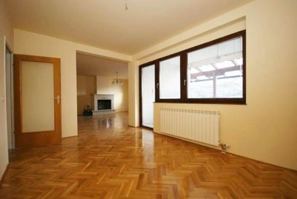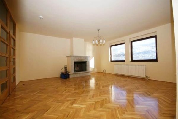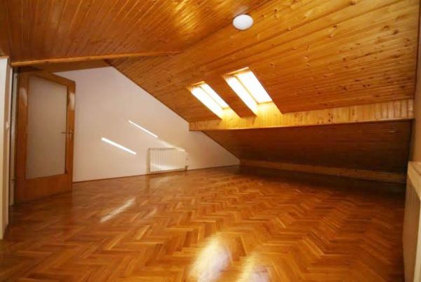 The basement has a hall which is connected with the garden, two bedrooms, sauna, boiler room, another hall bathroom, laundry room, large living room with access to the garden and internal stairs to the sprat.At first floor is a hall, bathroom, kitchen, pantry, dining room with access to a large terrace of about 30 sqm, which is connected to the stairs with a garden, a large living room with oak-lined fireplace.Stairs are leading to the floor with bedrooms. There is a large bedroom with dressing room corridor and bathroom s with a separate balcony, then there are three more bedrooms with hallway and bathroom.Attic is in oak and it is open area.