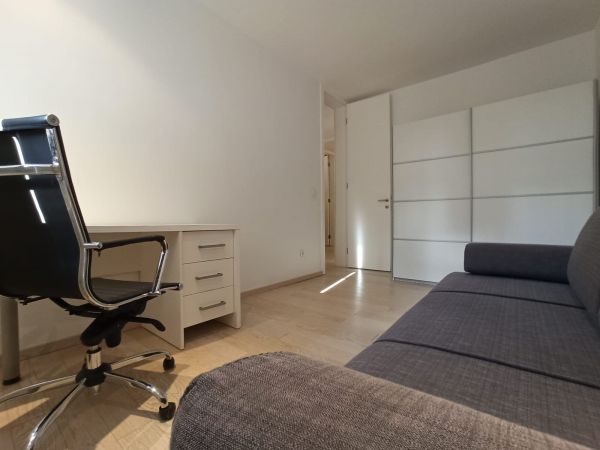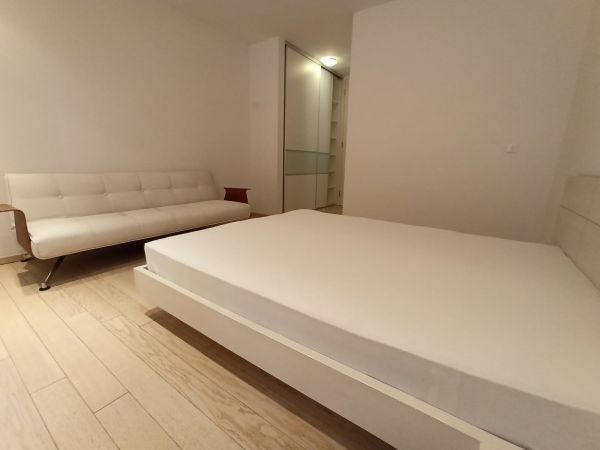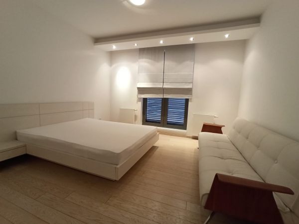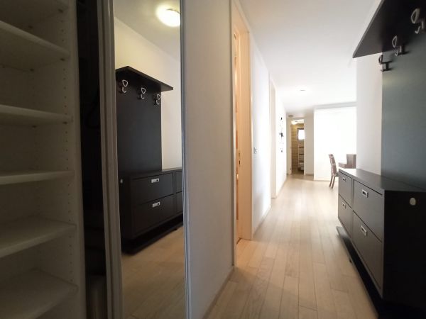 Central heating, air conditioning, parquet floors, high-quality multi-chamber PVC exterior joinery, modern wooden interior. Alarm, video surveillance, elevator from the garage, 24-hour physical security of the building, reception with staff. The apartment is bright and airy, with two-sided orientation. It is being rented fully furnished.