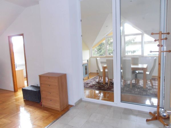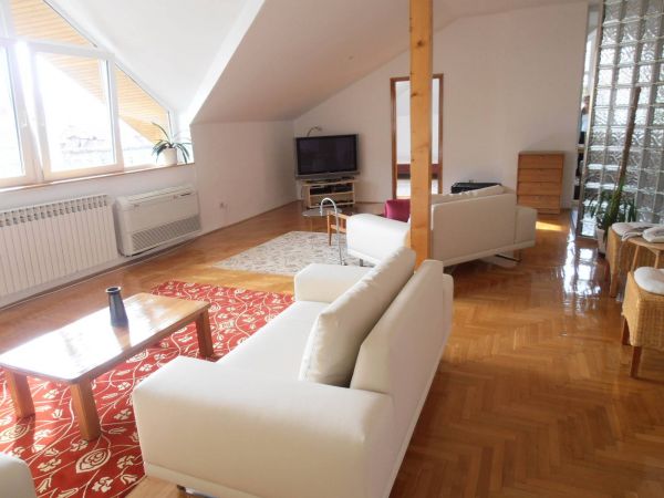 Size is 125 square meters and comprises entrance hall,3 bedrooms,2 bathrooms,living room,kitchen and dining room.From living room you can enjoy beautiful view at town of Sarajevo especially during the night.