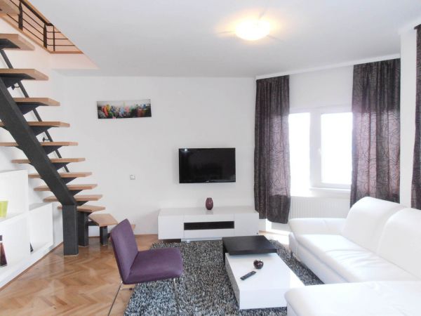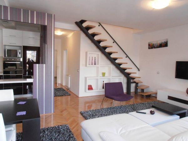 Apartment is on two levels and comprises entrance hall, 3 bedrooms,2 bathrooms,living room and dining room as an open space plus kitchen,balcony,storage.On second level there is nice space for library.