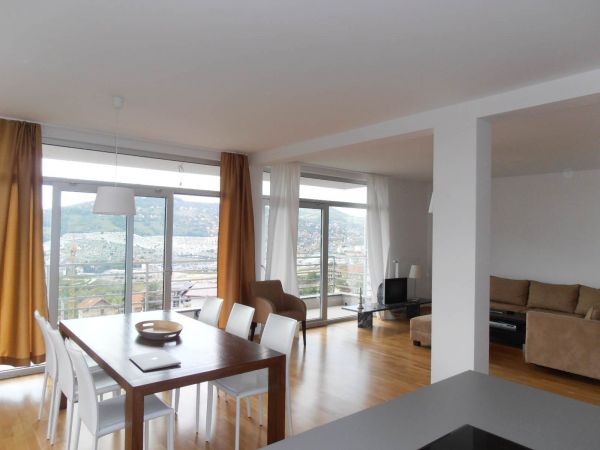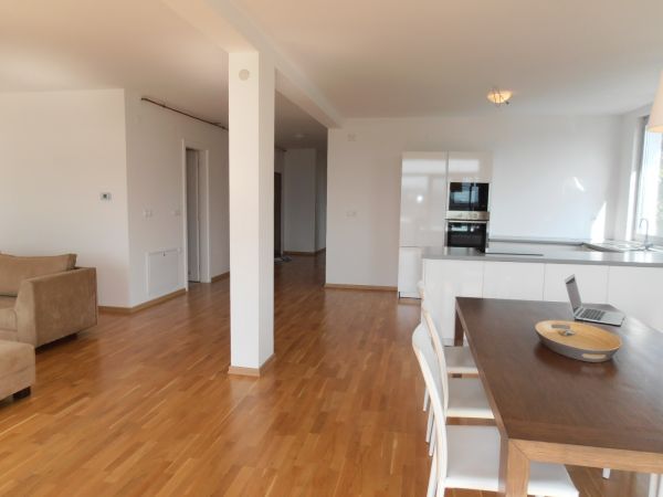 Apartment comprises living room(possibility for fireplace),dining room and kitchen area with exit to big terrace,3 bedrooms,2 bathrooms(master bedroom has it's own bathroom with small balcony) , laundry room,closet room .