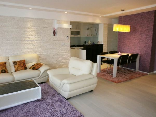Apartment comprises large entrance hall,1 bathroom,1 regular bedroom with balcony, 1 main bedroom with 1 additional bathroom,open plan living room with dining area and kitchen.