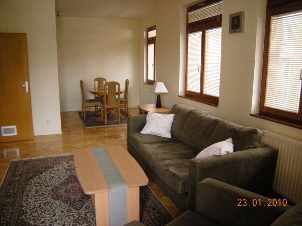Apartment comprises living room area,dining room and kitchen,2 bedrooms,1 bathroom and storage.Apartment is very nice and bright and provides garage for 1 car.