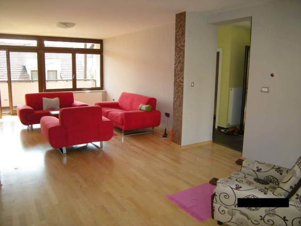 The apartment has 96 m², and comprises living room with dining room area(from here you can enter to terrace from where you can go directly to back garden of the house),kitchen,1 bedroom on 2 levels,bathroom,another bedroom with bathroom and pantry.