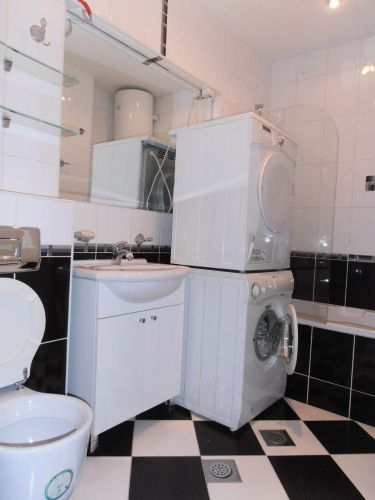 Apartment comprises entrance hall,1 bedroom,1 bathroom,1 main bedroom with it's own bathroom and balcony,big living room with dining room area and beautiful kitchen.Apartment also offers garage.