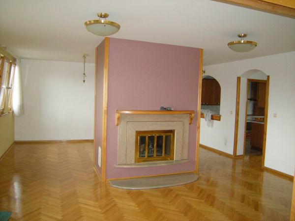 First level comprises 1 bedroom,large kitchen,big open area for dining room and living room with beautiful fireplace in the middle,bathroom and balcony.