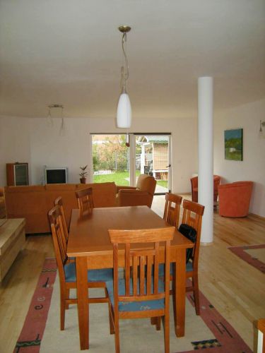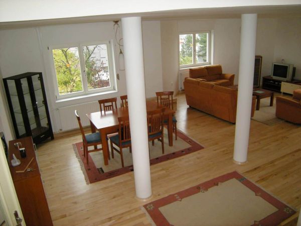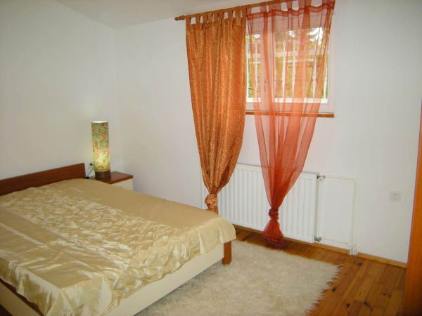 Ground floor is an open area for living room and dining room from where you can exit to beautiful garden that is made for pleasure(barbecue,garden house).There is also kitchen,1 main bedroom with bathroom,another bedroom,1 more bathroom,laundry room and storage.