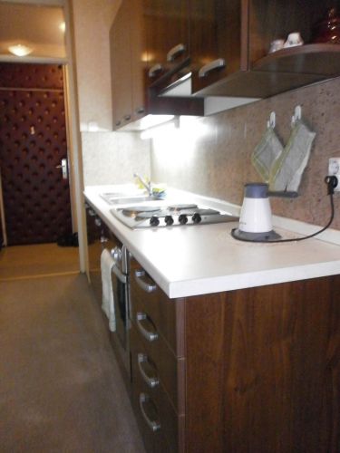 Apartment comprises entrance hall,kitchen and dining area and small sofa for sleep,1 bathroom and bigger living room.