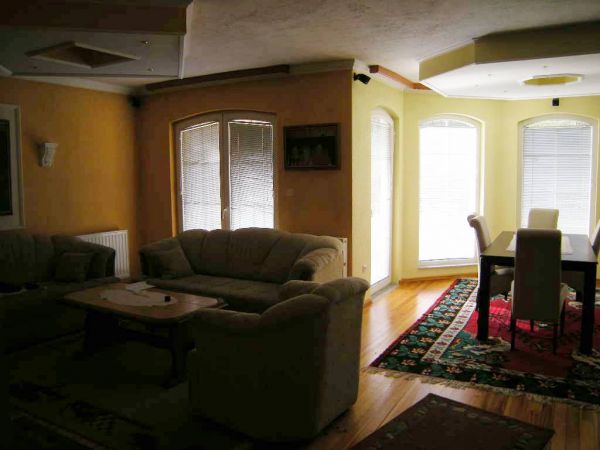 House comprises glazed living room(fireplace) with dining area and kitchen,4 bedrooms(each has big terrace),2 bathrooms,1 toilet and balconies and terrace.