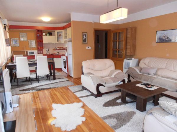 Apartment comprises large entrance hall,living room with dining area and modern kitchen with all appliances ,exit to balcony with beautiful view ,1 main bedroom, modern bathroom, additional bedroom. Very bright, modern and comfortable apartment in popular central area.