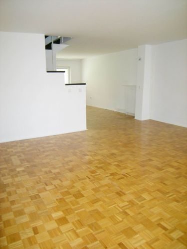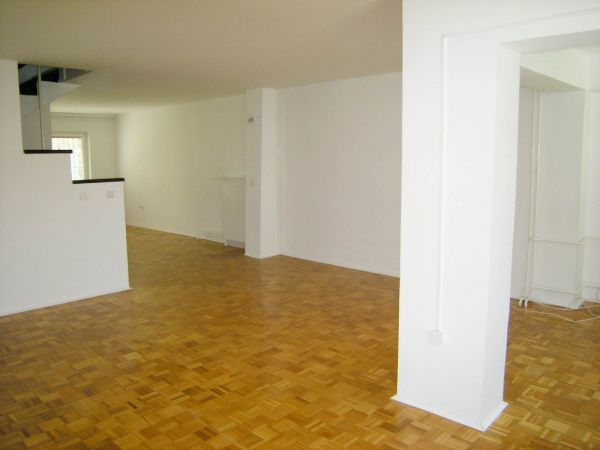 First floor comprises large spacious living room with dining area and kitchen with exit to garden.