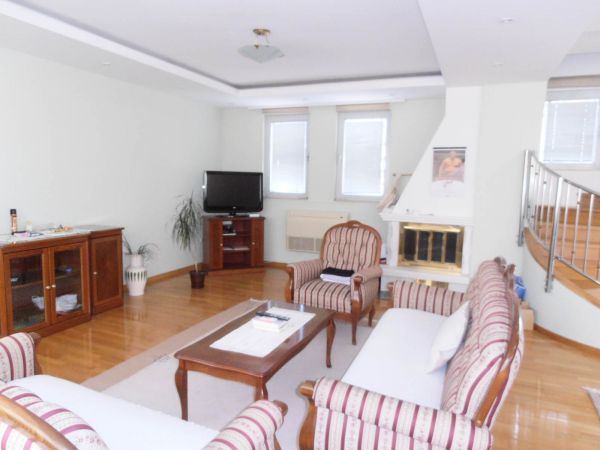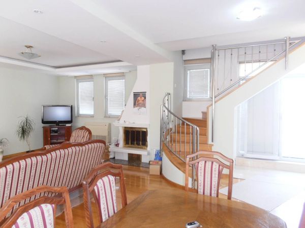 First level : entrance hall , big open space for living room with fireplace that is connected with dining area from where you can go to terrace.Kitchen is semi divided from this space and very modern.On this level there is also a bathroom.