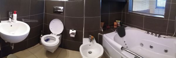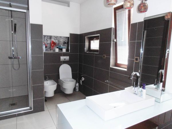 At ground floor house comprises garage ,gym ( big storage or laundry room) , boiler room ,1 toilet.From this part of the house you can go directly to nice private garden.