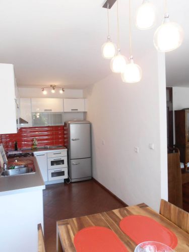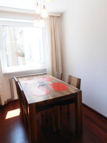 Apartment comprises large entrance hall, main bedroom,big open area for living room, dining area and kitchen from where you can go to balcony that is glazed and can be used during entire year.Also there is another bedroom that is used as a study room or guest room,1 bathroom and 1 toilet.