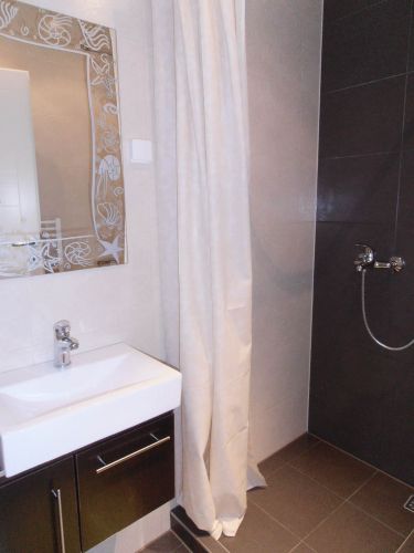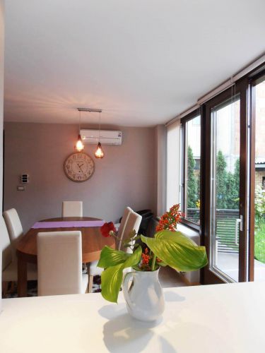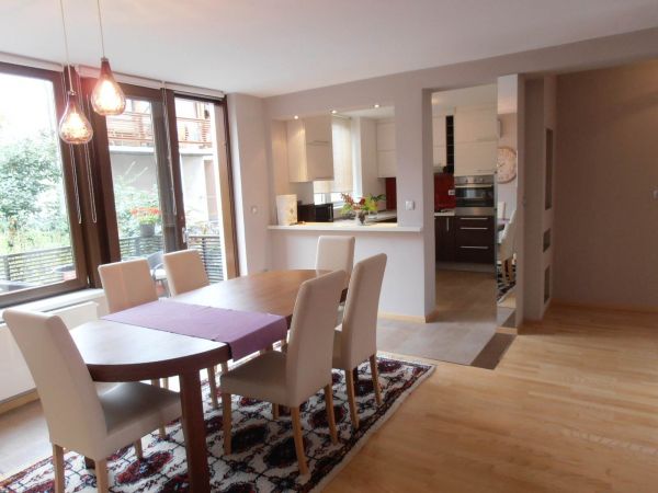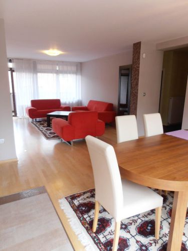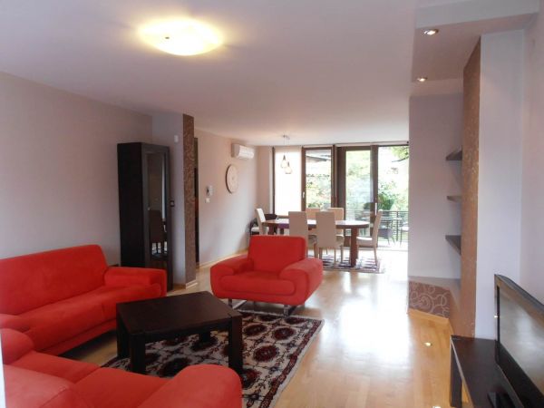 The apartment has 100 m², and comprises big bright living room ( exit to balcony from where you have beautiful view at city),with dining room area(from where you can enter to terrace and go directly to back garden of the house),kitchen,1 bedroom,1 study/work room,bathroom,another bedroom with bathroom and pantry.