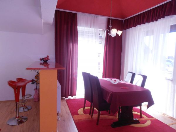 Apartment has nice living room area (with exit to terrace)connected with dining room and kitchen,2 bedrooms(one has exit to same terrace)and bathroom. All is nice and modern and furniture can be changed by needs.