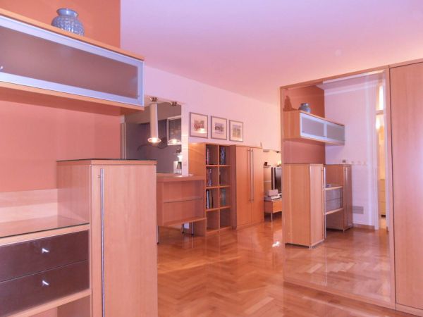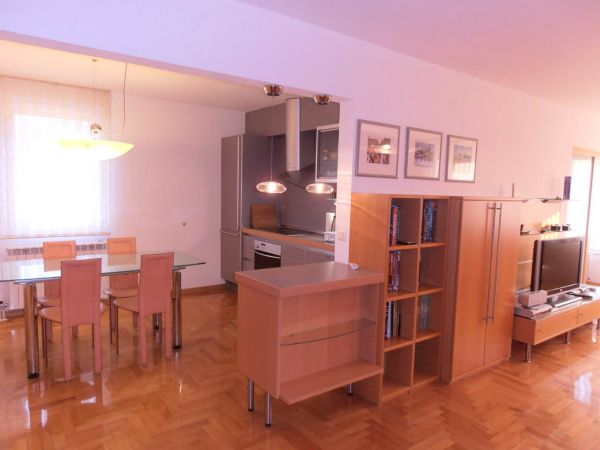 The apartment comprises:entrance hall with lots of waredrobes, big open area living room that is semi connected with dining room and kitchen. This area is very bright and sunny because of big windows. There are two bedrooms(momentarily one is used as study room but that can be changed by your needs), big bathroom with hydro-massage bathtub and slide door inbuilt space for washing machine. Apartment is very quiet and will provide max privacy.