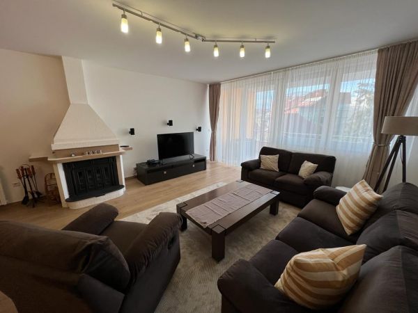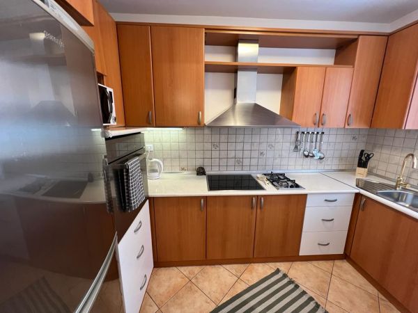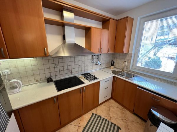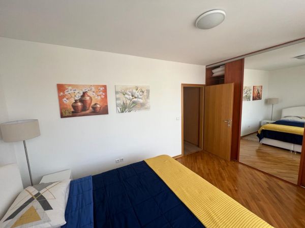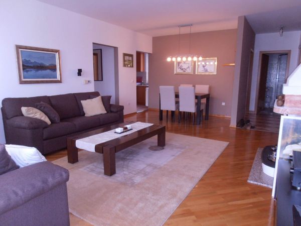 The apartment comprises:entrance hall with wardrobes, big open area living room(fireplace) with dining room (this area is very bright and sunny because of big windows). From here is exit to terrace that offers view at city center.Kitchen is modern and fully equipped. . There are three bedrooms(momentarily one is used as study room but that can be changed by your needs), big bathroom with hydro-massage bathtub and another with shower and space for washing and drying machines. Apartment is very quiet and will provide max privacy.