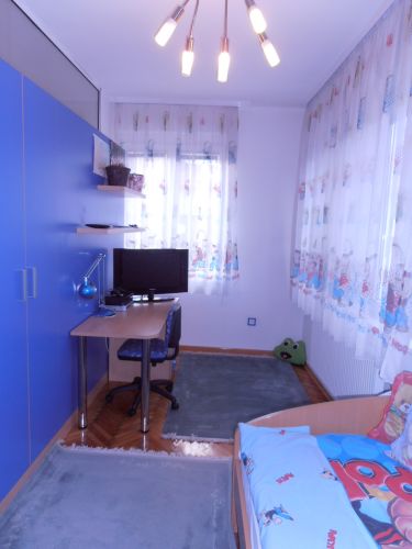 Apartment comprises:entrance hall with wardrobes,living and dining room area that are connected to kitchen,main bedroom,3 more bedrooms,2 bathrooms,study room,pantry.