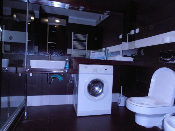 Apartments are modern,bright with nice view at entire city of Sarajevo. Size is 100 square meters.Apartment comprises big living room with kitchen and dining room with entrance to terrace with great view at city,private part of apartment reserved for main bedroom and bathroom with lots of wardrobe space,another bedroom with exit to terrace,additional bathroom,Layout is modern,comfortable and very luxurious.Also again to mention there is a big terrace with beautiful view over town that is characteristic of this building.Apartment is momentarily fully furnished but can be rented with or without furniture.