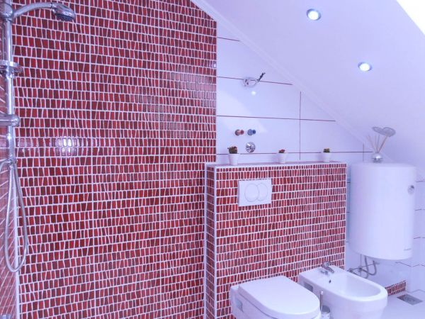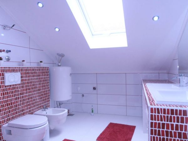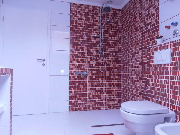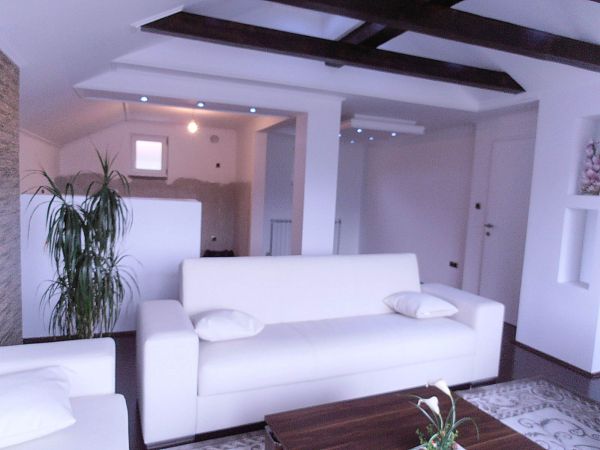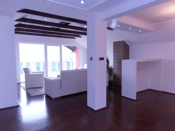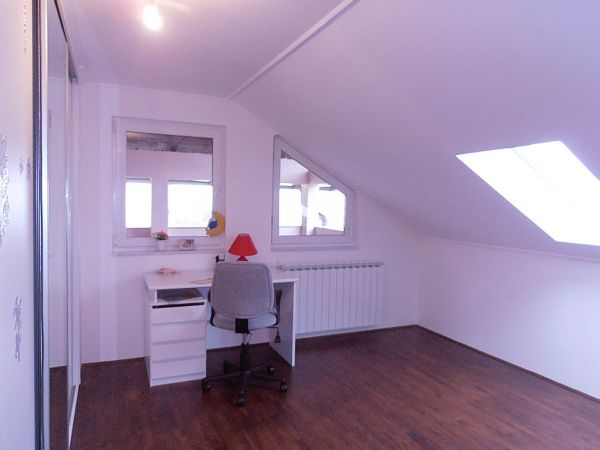 One level down is living room (same terrace like upstairs)with kitchen and dining room,2 bedrooms with balcony,bathroom,toilette. Also there is storrage and garage for 2 cars. House can be rented furnished or unfurnished.