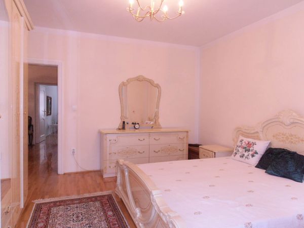 Apartment comprises entrance space, living room with dining area, small but very functional kitchen , 1 bedroom that is connected with in-glassed balcony that is used as study/wardrobe room(from where view is full with green so it feels like garden) and bathroom with shower and massage tub..