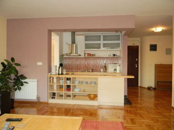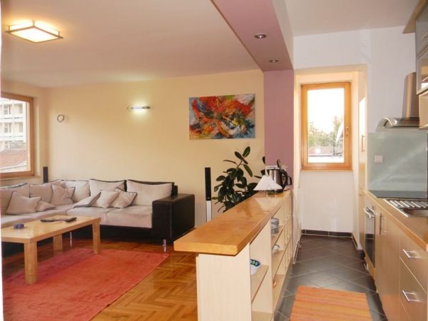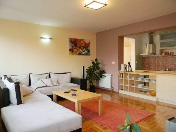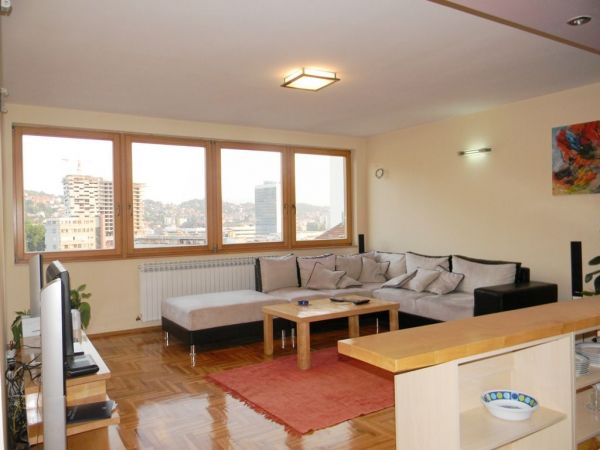Apartment has 75 square meters, living room with dining room and kitchen,2 bedrooms,bathroom,balcony with nice view.Place is totally furnished and equipped with modern appliances.