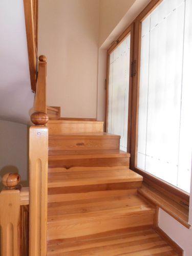 First level consists of 1 bedroom,large kitchen,big open area for dining room and living room with beautiful fireplace in the middle,extra room that can be part of living room too,bathroom and balcony.