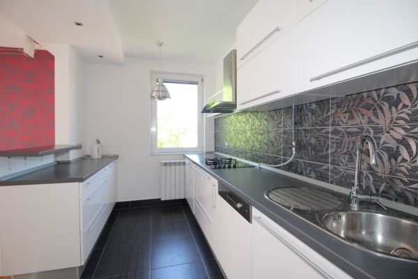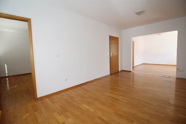 The apartment comprises living room, dining room with kitchen equipped with new fitted elements, three bedrooms(used to be and can be again 4 bedrooms -making 2 of 1 large) each one equipped with A/C unit, 2 bathrooms, and spacious entrance hall and wardrobe room . There is an underground garage.