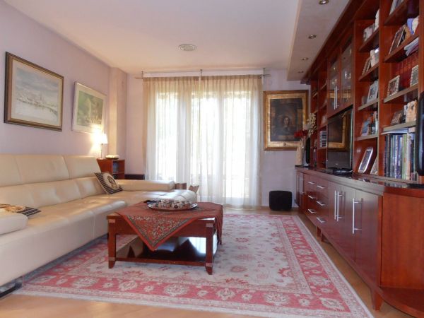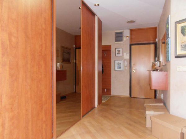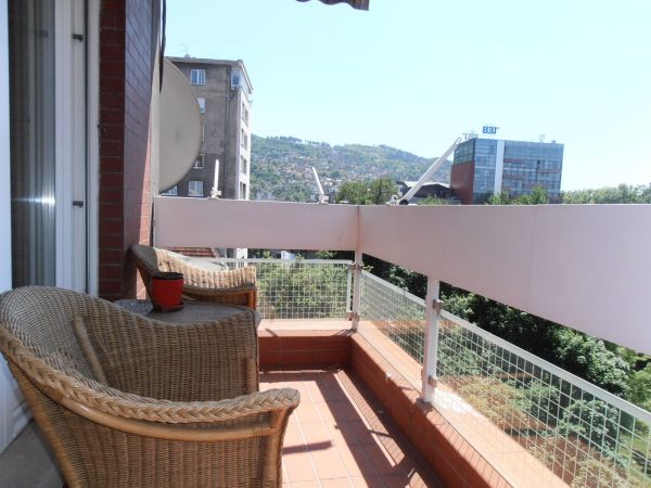 Apartment has 100 square meters and comprises entrance hall with wardrobes,big open living room and dining room area with kitchen. From living room is balcony with beautiful view at city park and center of Sarajevo. There is another in glassed balcony from kitchen that can be used as storage. Also there is main bedroom and second bedroom and bathroom.