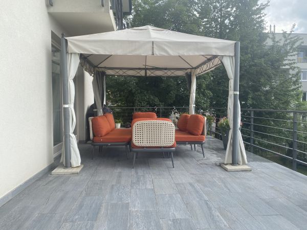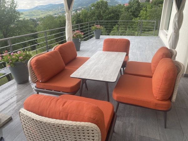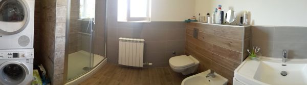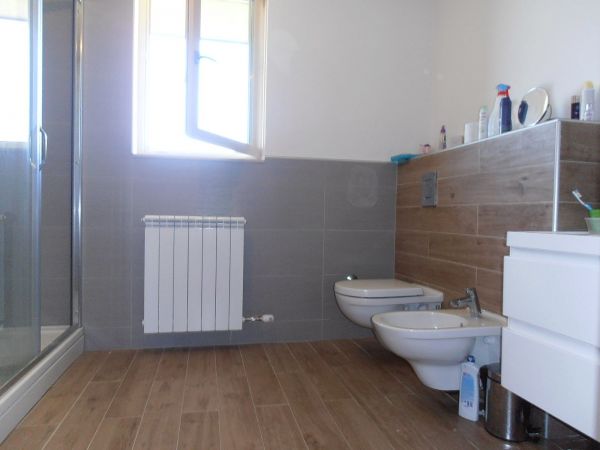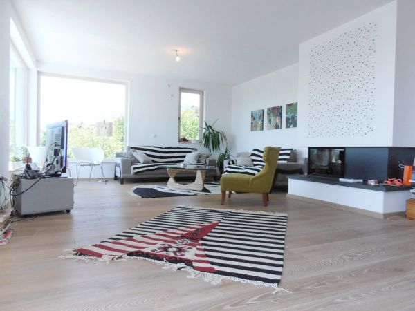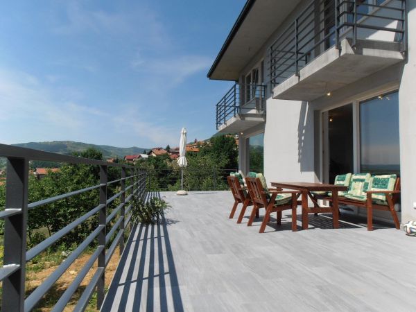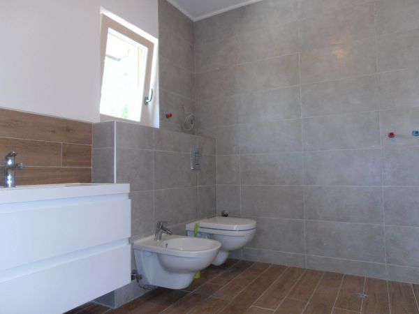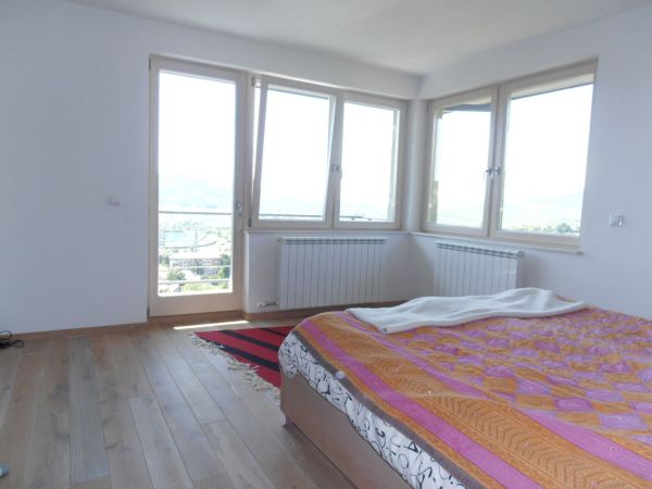 There are 220 square meters and consists: ground floor-spacious entrance, big open space for living room with fireplace, dining area and open plan kitchen with exit to the big terrace, toilette.At first floor is main bedroom with bathroom,, 2 more bedrooms, laundry room, boiler room, bathroom. Each bedroom has balcony with great view.There is also big attic space