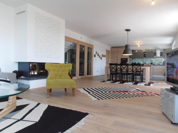 The house is located on Breka, offers a garden, terrace ,balconies and views of the countryside and football stadium. Build is equipped with the latest energy-saving materials and devices.