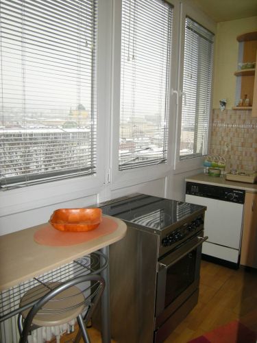 Large windows in kitchen and dinning area with beautiful view over the city.