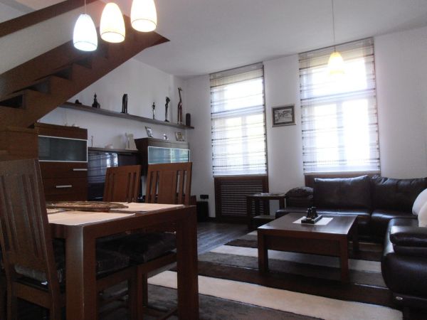 Renovated ,moderm apartment in Bolnicka street,10 min walk to BBI shoping center and pedestal part of city center. This 2 level apartment consists of: entrance with wardrobe/storage ,kitchen ,bathroom,one bedroom,open plan dining room and living room space . On second level is another bedroom.