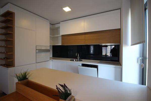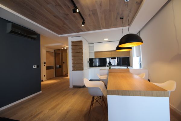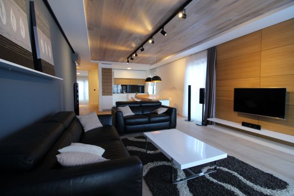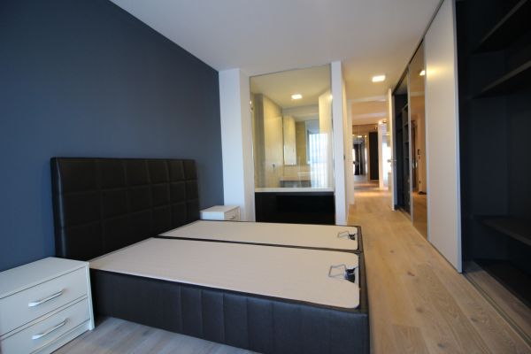 Totally furnished,modernly but yet functionally equipped,120 square meters,open living room and dining area with semi-open plan kitchen,master bedroom with bathroom,2 bedrooms,bathroom,laundry room. Garage for 2 cars,storage, fitness room,sauna,24 hour security system. Rest of furnishing will be done by needs of future tenant.