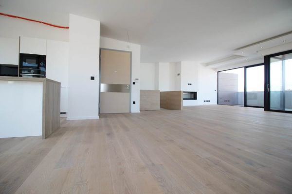 Modern top quality building and apartment in peaceful,secured area. Apartment have 185 square meters,plus 40 square meters of outside places-3 terraces). Comprises large open kitchen (terrace),dining area and living room area with fireplace and big terrace,toilet. Other level comprises private part for master bedroom with large bathroom with bathtub,shower ,toilette and sauna.Also there is closet room.Another 3 bedrooms with terrace,extra bathroom and long corridor with closets. Underneath staircase there is additional space.