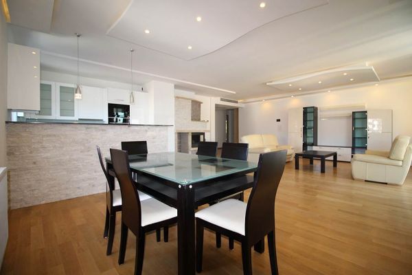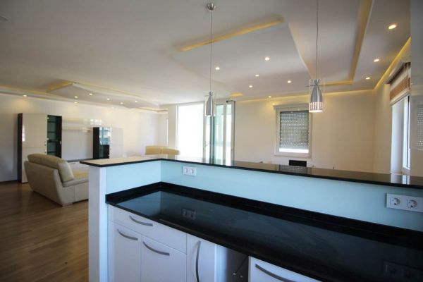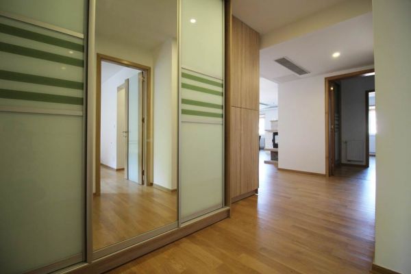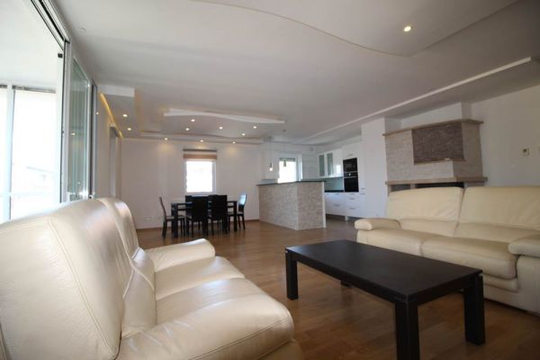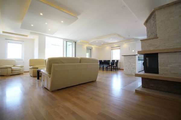 Apartment comprises 145 square meters,open living room with fireplace and in glassed balcony with dining room and kitchen,master bedroom with walk in closet and bathroom,2 additional bedrooms,another bathroom,toilette,lots of inbuilt closets,pantry,storage,parking place in underground,secured garage.