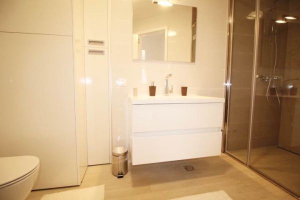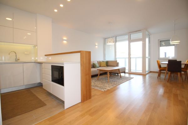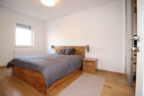 Apartment comprises 88 square meters,open living room with balcony together with dining room and kitchen,master bedroom with walk in closet and bathroom,1 additional bedroom,toilette,lots of inbuilt closets,pantry,storage,parking place in underground,secured garage.