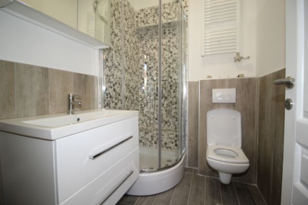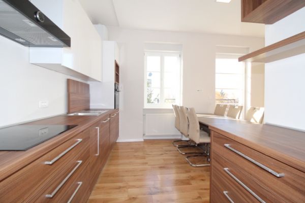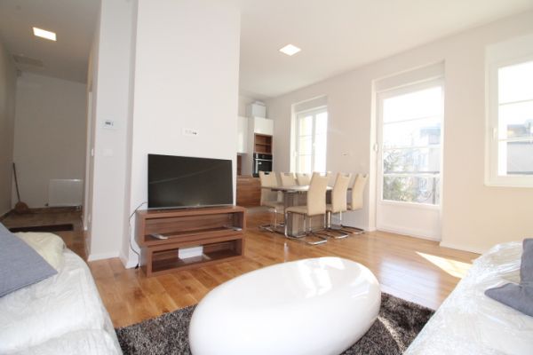 Apartment comprises living room with dining area and modern kitchen with balcony.There are 3 bedrooms(one has its own bathroom),hallway with in-build wardrobe and another bathroom .Apartment has garage.