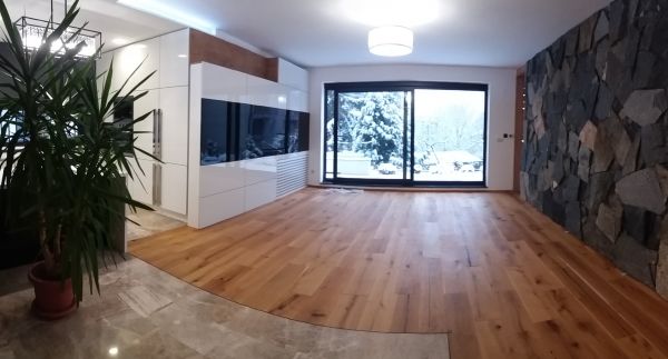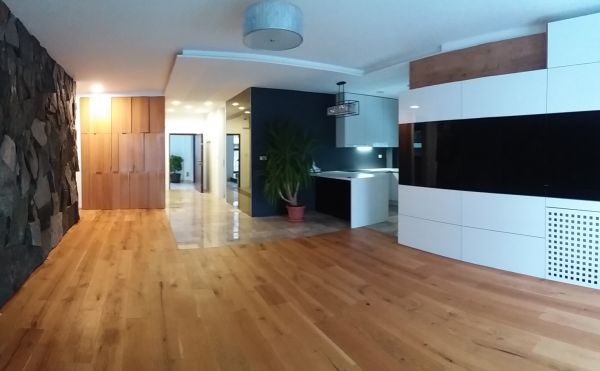 Size:129 meters square, open living room ,dining room,kitchen,big terrace,3 bedrooms,2 bathrooms,1 toilette,boiler room,pantry(storage)garage for 2, parking for more cars.