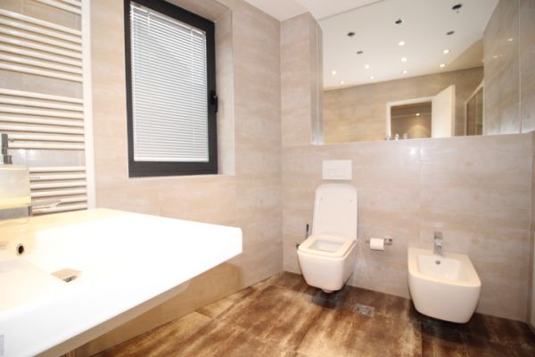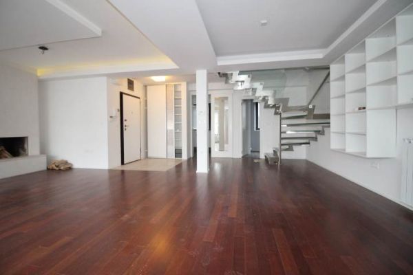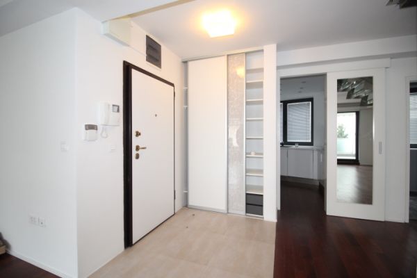 Apartment has 135 square meters and comprises:first level is open living room (fireplace) and dining room area with exit to terrace,kitchen and toilette. On second level are 2 bedrooms(one with terrace),bathroom,one master bedroom with own closet room and bathroom.